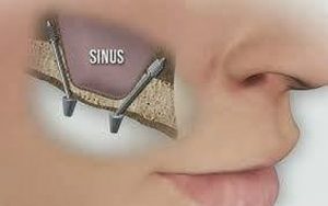 גורם משפיע על צפיפות העצם ותשתית להחדרה של שתלים דנטליים הוא הסינוס היושב בלסת העליונה מאחור ויוצר חלל אוויר ריק המדקק את הלסת העליונה. הסינוס מהווה גורם מפריע ומגביל לקיומה של השתלה מאחר והוא חלול ואינו מספק עובי של עצם אליה ניתן יהיה להחדיר שתלים. חשוב לדעת כי מגבלה זו נכונה למרבית סוגי השתלים שכן אינה בוחנת את איכות השתל עצמו כי אם מגבלה להחדרתו לעצם.